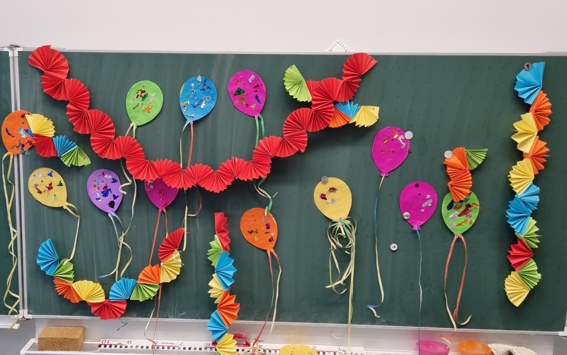 Die Klasse 2c von Frau Hartberger lud Mitte Februar die Vorschulkinder vom Kindergarten St. Markus zu sich ins Klassenzimmer am Schlößle ein. Gemeinsam wurden Winter- und Faschingslieder gesungen. Danach bastelten die Kinder eifrig Faschingsgirlanden und Konfettiluftballons. Dabei halfen die Zweitklässler stolz den künftigen Schulkindern. Es war ein gelungener und kurzweiliger Vormittag, an dem alle viel Freude und Spaß hatten.